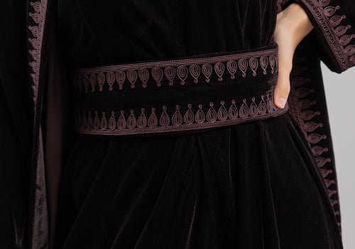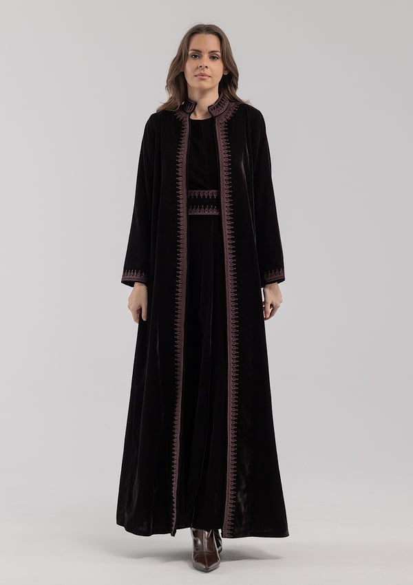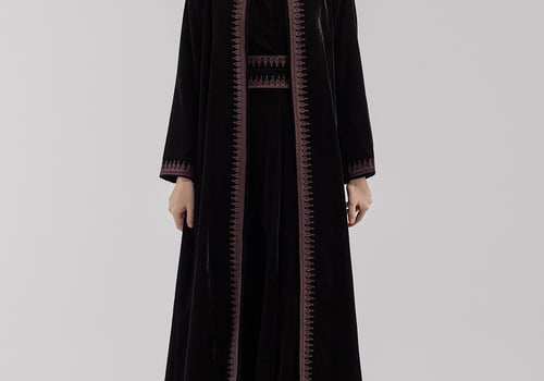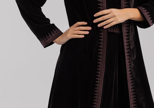 A purple velvet kaftan featuring traditi...